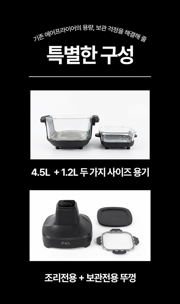 √ 조리 후 유리용기 그대로 보관 가능한 보관뚜껑 구성