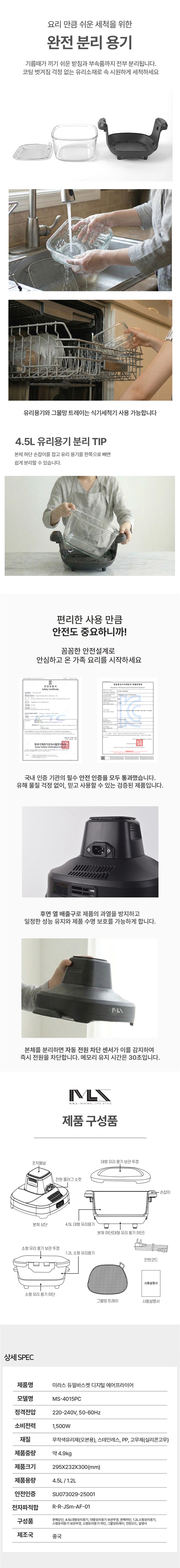 미라스 듀얼바스켓 글라스 에어프라이어 / MS-4015PC(블랙)