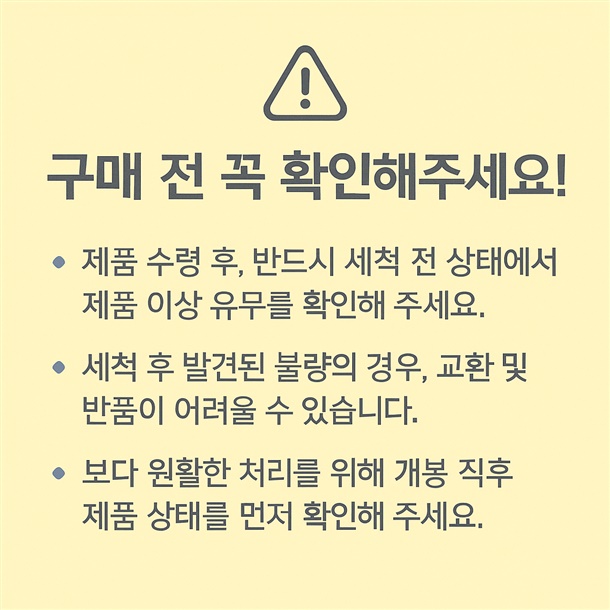 · 상품 불량 사유와 사진을 남겨 주시면 빠른 처리가 가능합니다.