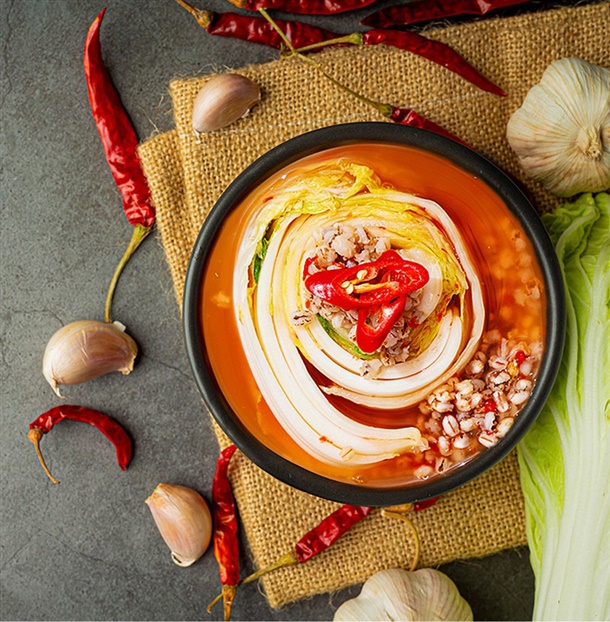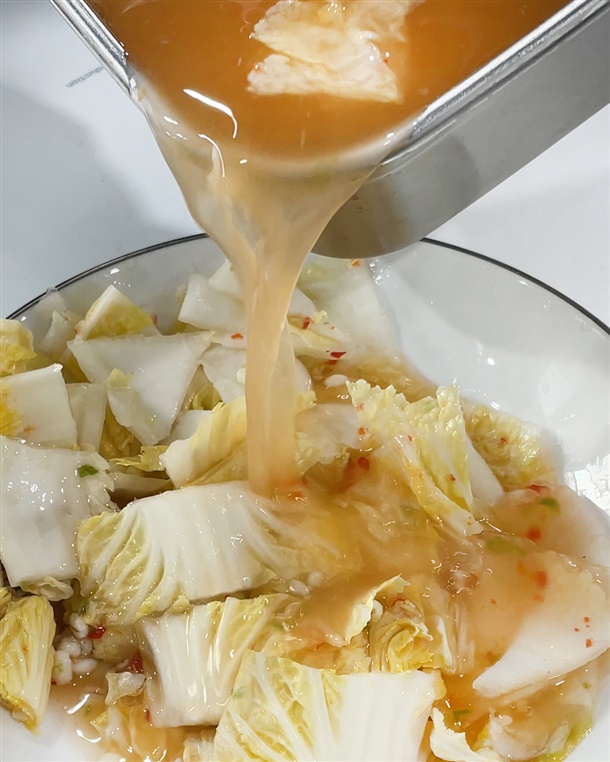잎이 연하고 조직이 단단한 알배추를 사용해 무르지 않고 아삭한 식감을 유지하며