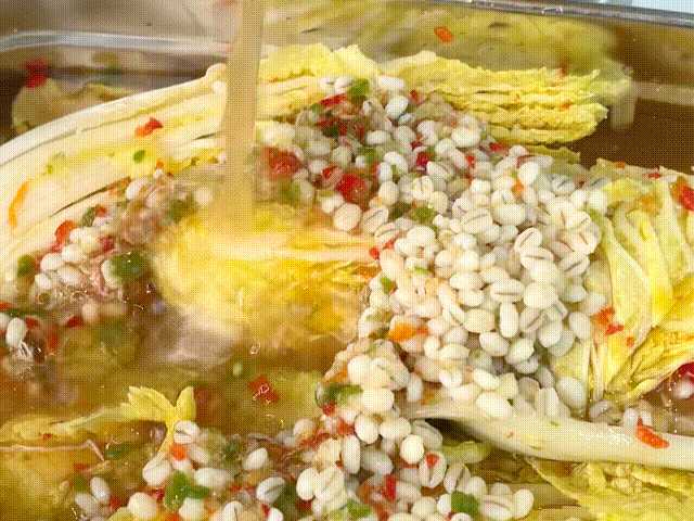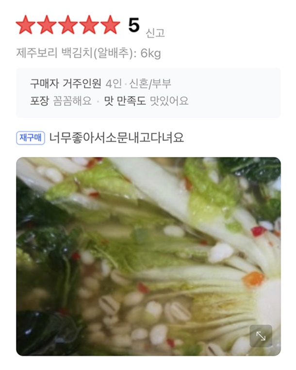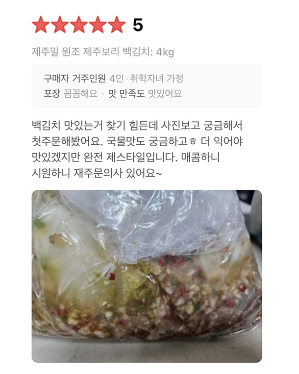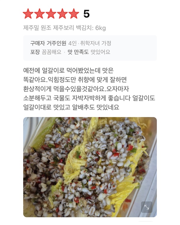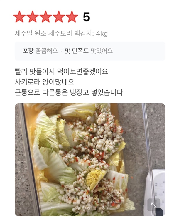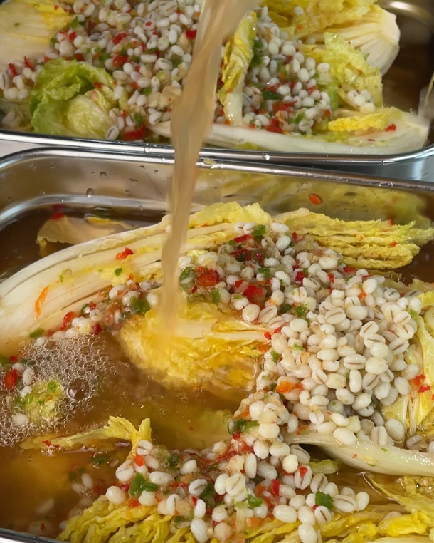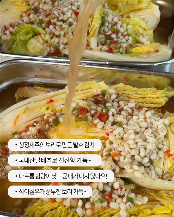 제주 보리가 더해져 김치 맛이 깊고 깔끔해요