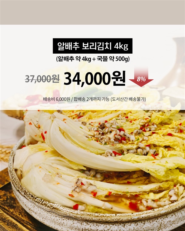 제주보리 알배추 김치 4kg