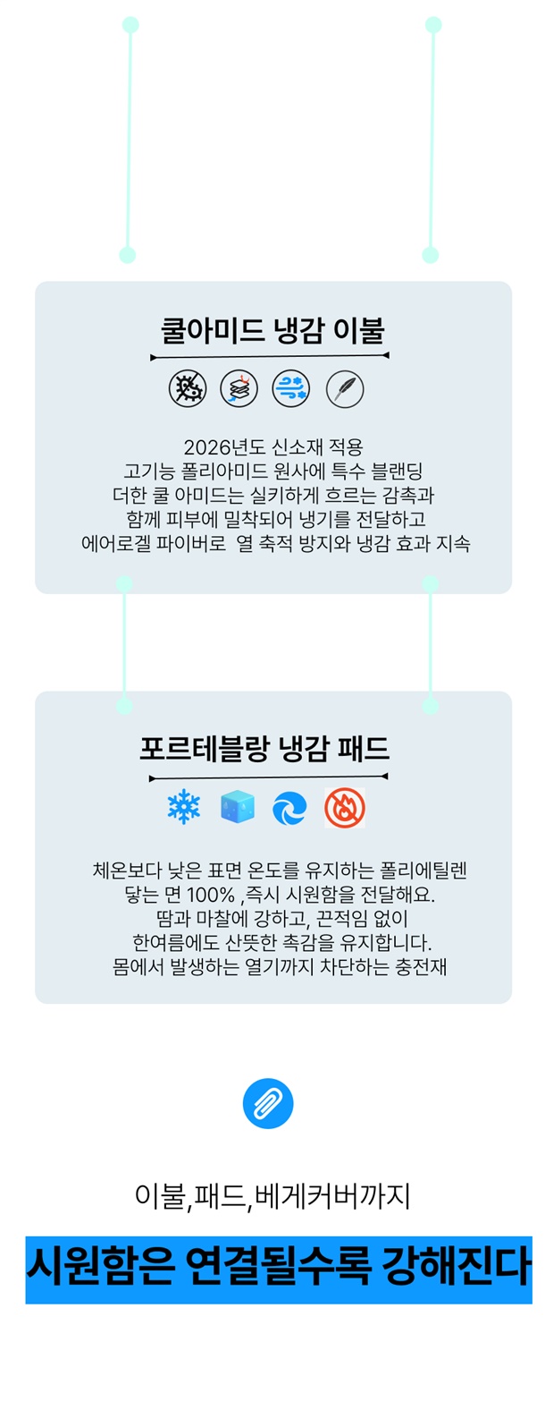 이불은 신소재 냉감 쿨 아미드+외부 열기 축적방지 충전재